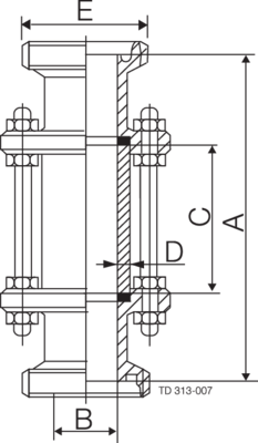 IN-LINE SIGHT GLASS DIN NW50 - W/2 MALE PARTS 304